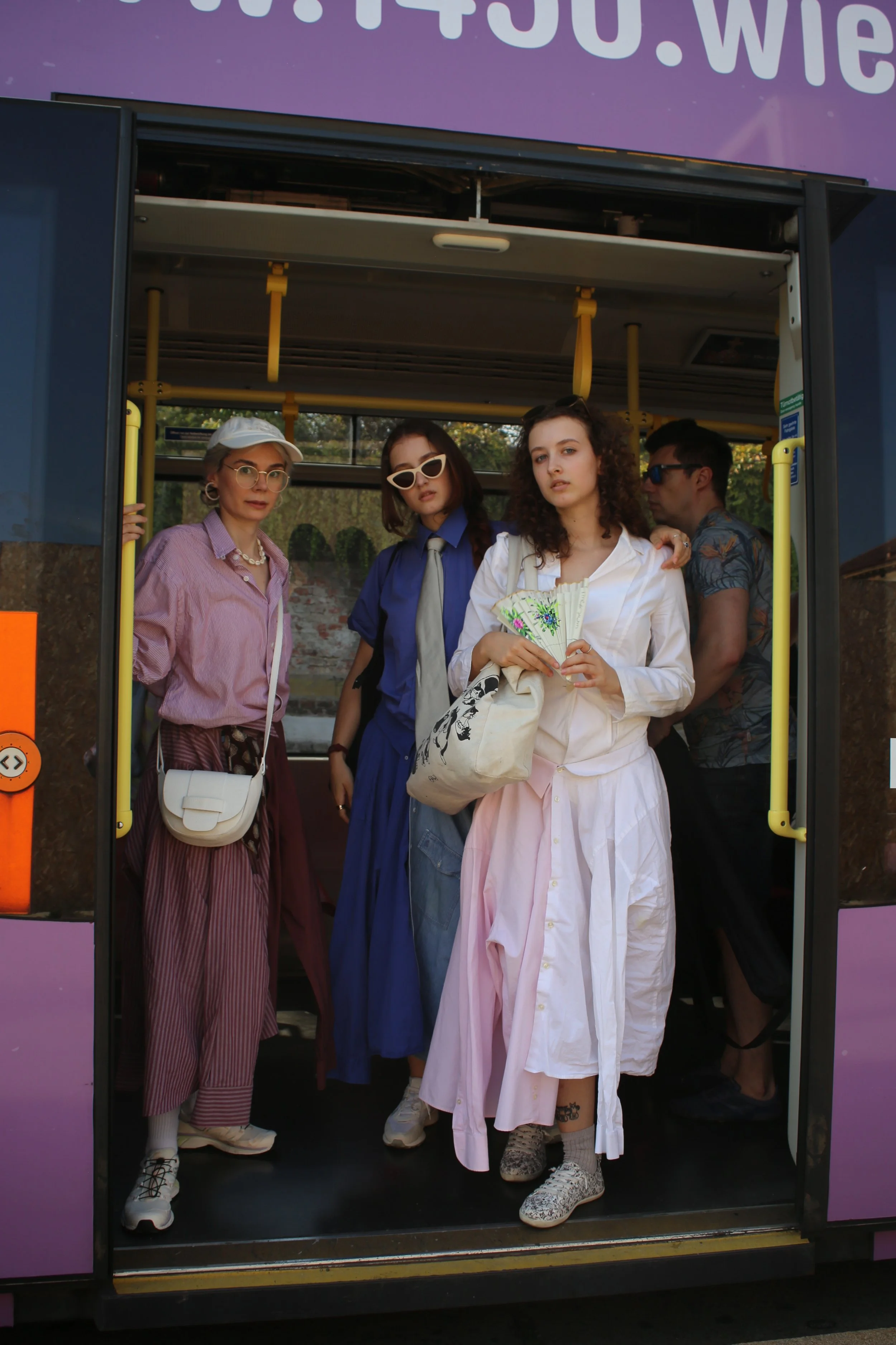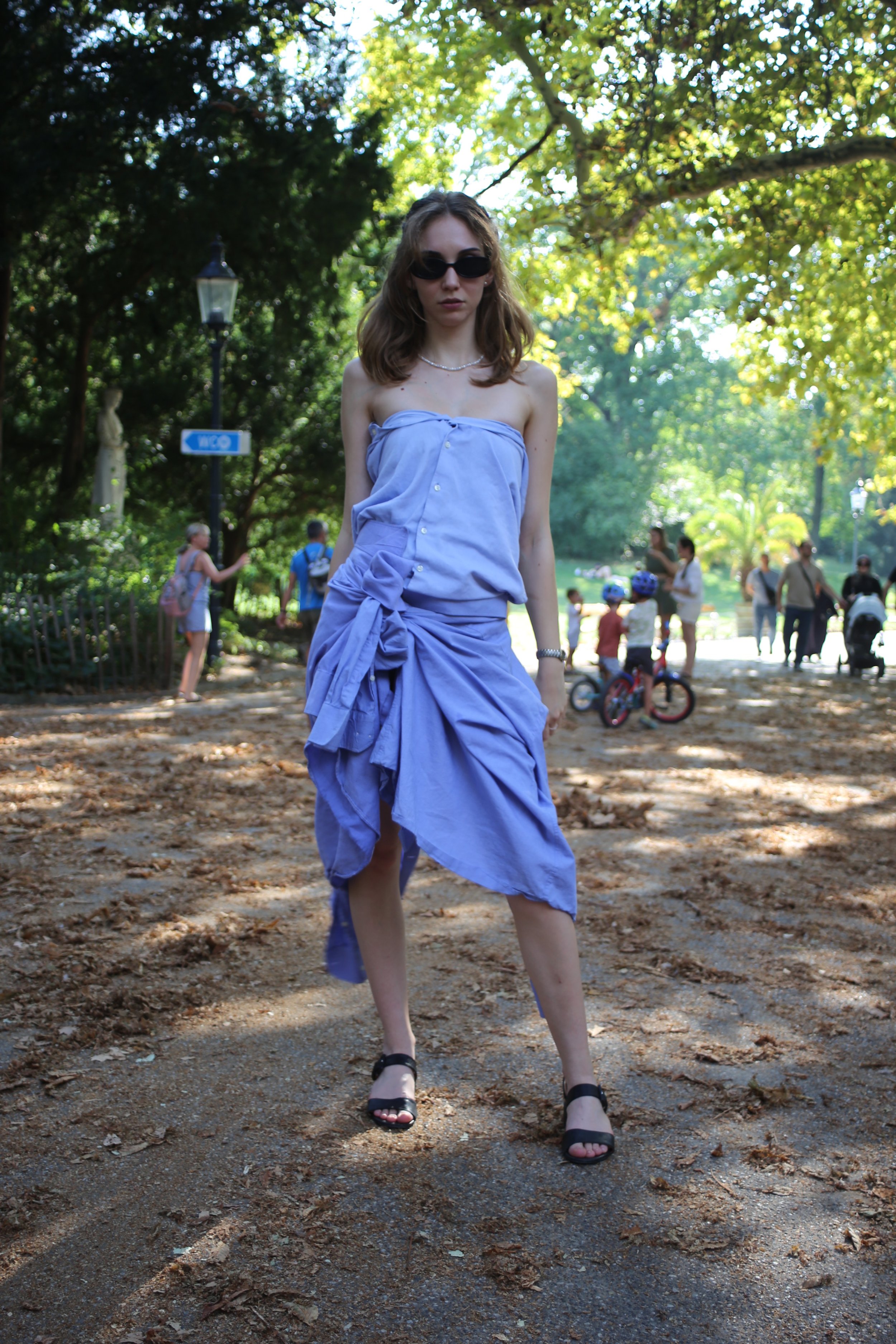 by [1/1]™. These images show the dress being worn, which consists of three individual shirts, that can also be worn as single pieces.